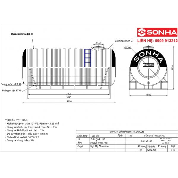 Tiêu chuẩn kỹ thuật của bồn nước inox 10000 lít Sơn Hà
