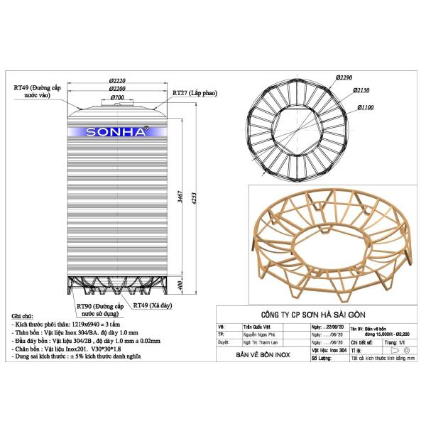Lưu ý: Thông số kỹ thuật bồn nước inox 15000L nêu trên có dung sai ±5% (theo bản công bố chất lượng sản phẩm). Các thông số trên có thể được thay đổi bởi nhà sản xuất mà không cần báo trước.