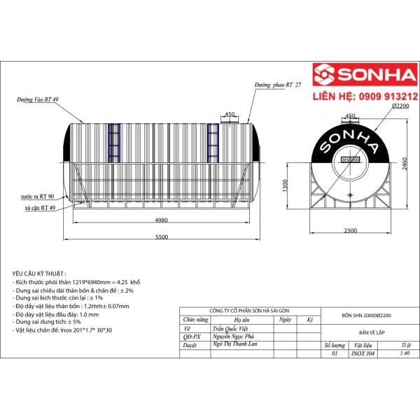 Tiêu chuẩn kỹ thuật của bồn nước inox 20000 lít Sơn Hà