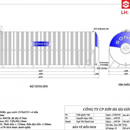 Tiêu chuẩn kỹ thuật của bồn nước inox 8000 lít Sơn Hà