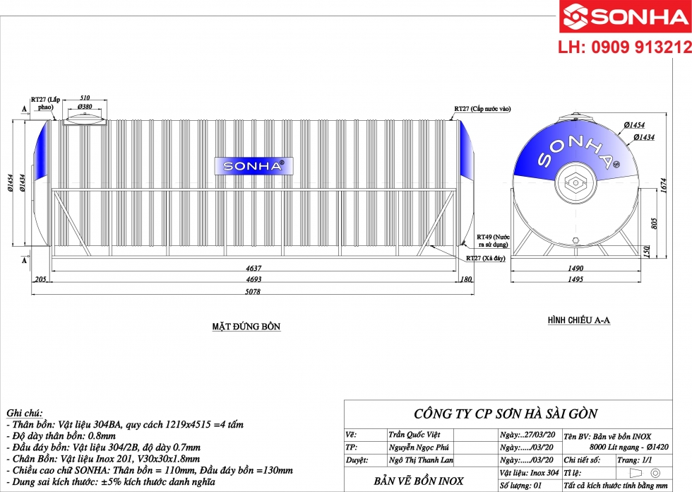 Liên hệ mua bồn inox công nghiệp 8000L Sơn Hà:
