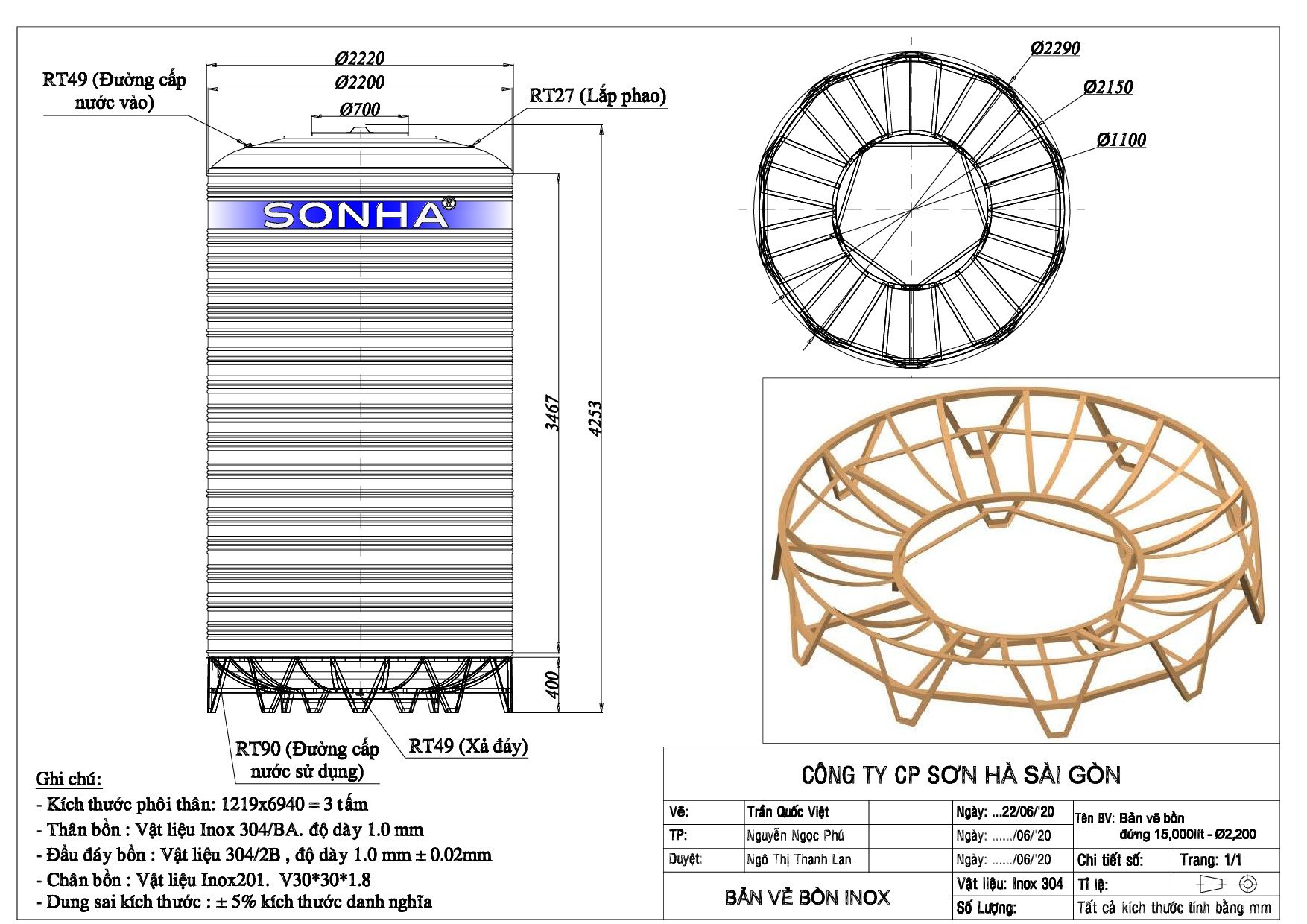 Tiêu chuẩn kỹ thuật của bồn nước inox 15000 lít Sơn Hà