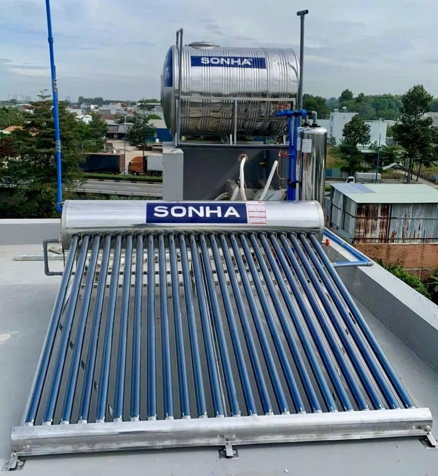 Máy nước nóng năng lượng mặt trời Sơn Hà được lắp đặt thực tế tại nhiều gia đình, công trình dân dụng và nhà trọ trên toàn quốc. Sản phẩm nổi bật với thiết kế hiện đại, sang trọng, độ bền cao và khả năng hấp thụ nhiệt nhanh, giữ nhiệt lâu, mang lại nguồn nước nóng dồi dào quanh năm.